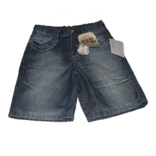 This pair of denim shorts features a knee-length style with a zipped-fly and button closure. The ruffled details simply give wearers an energetic look. This pair of denim shorts is sure to go well with T-shirts for a casual look.