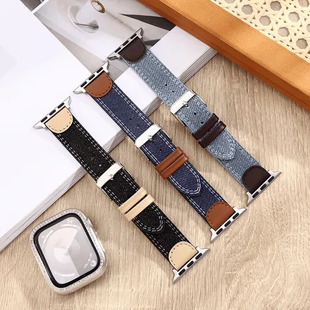 Denim leather watch strap applicable for classical watch and apple watch full series