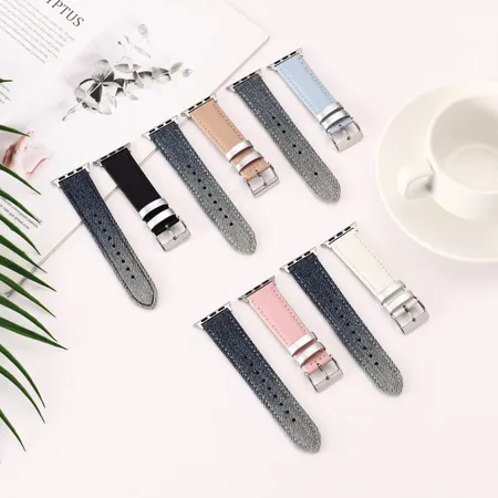 Denim leather watch strap applicable for classical watch and apple watch full series