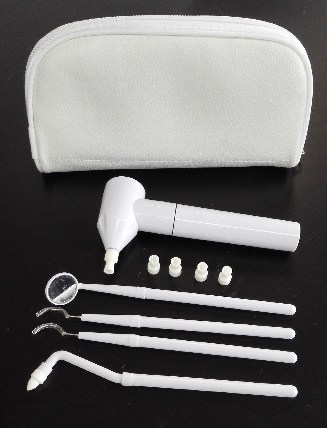 • White storage pouch4 pcs dental picks: dental mirror, interdental space cleaner, plaque remover, stain remover