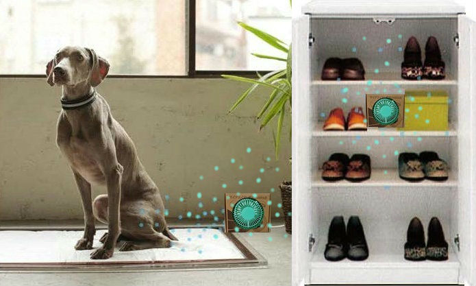 in a certain small space Generated negative ions and odor particles in the air magnetically attract to one another. The odor particle will fall out of the air, and will then be collected by normal cleaning activities, such as vacuuming or dusting, so remove odor from your pet's room, car room, toilet, shoes closet naturally.