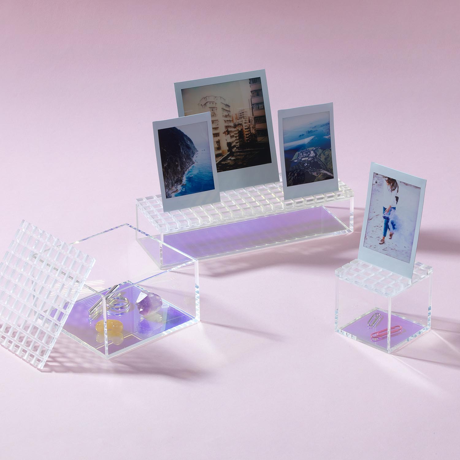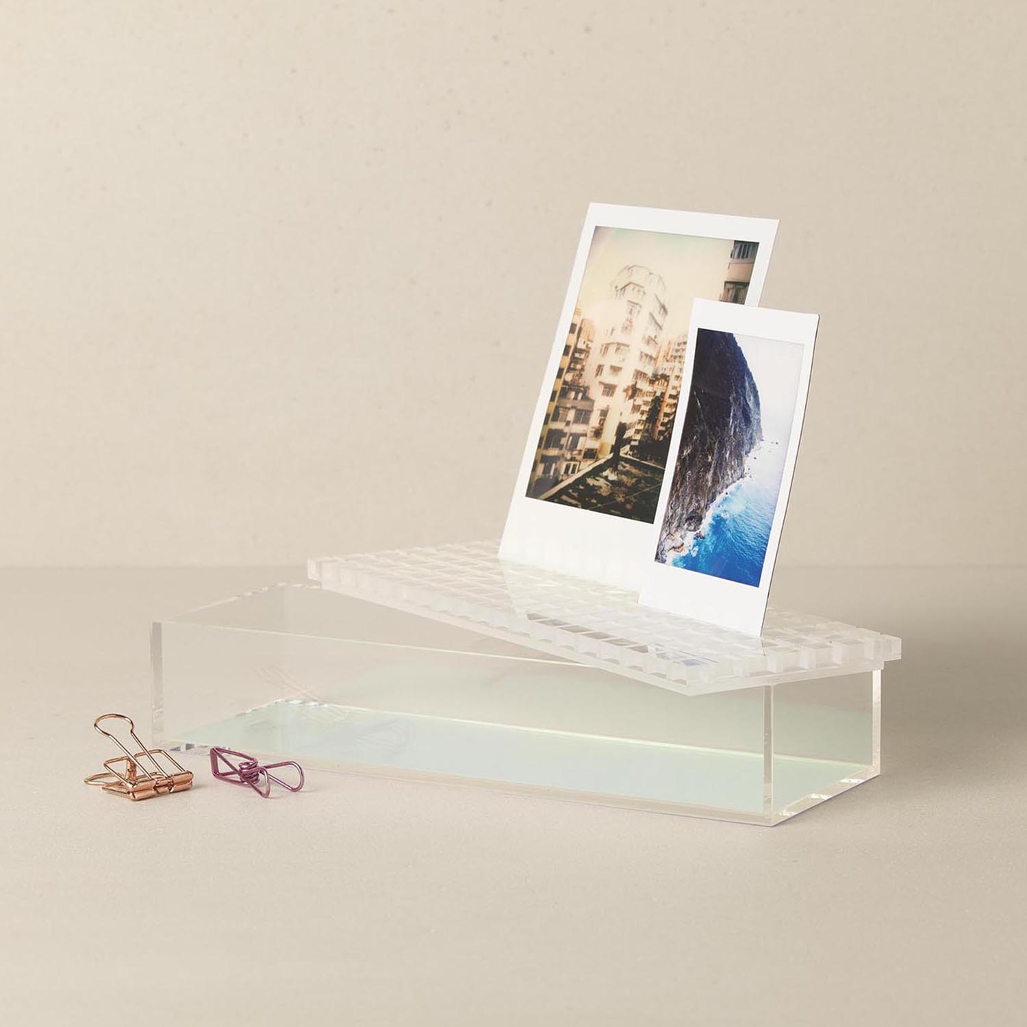 Design Trendy High Quality Iridescent Jewelry And Stationery Rectangle Acrylic Photo Holder Box