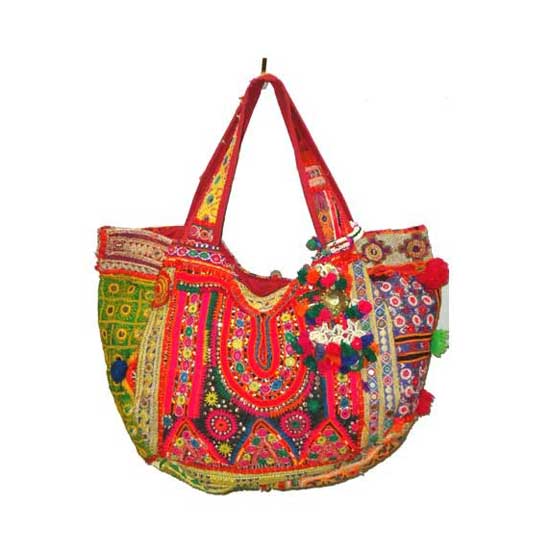This vintage banjara bag is made of old mirror work textiles. We collect old antique dresses and textile materials from different regions to make them into bags. This eye-catching bag has cotton lining with one pocket inside.