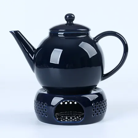 The fine porcelain tea warmer with a geometric cutout pattern, designed to keep tea warm using a tealight candle.