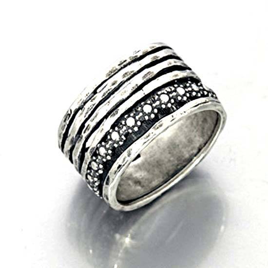 This spinning ring boasts a fashionable design with delicate craftsmanship. It features irregular striped and floral patterns. The sterling silver fills this stylish ring with a sense of elegance.