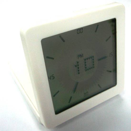 This is a digital LCA clock. This clock has dual power:solar and battery. This is an environmental friendly product.