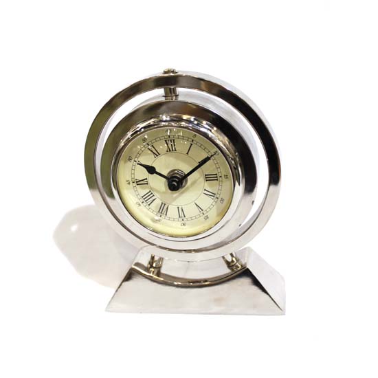 Featured is a clock with a classy and vintage-inspired design. The clock is well made of quality aluminum for a durable finish. This stylish timepiece is a great time-keeper to be kept on your desk or bedside.