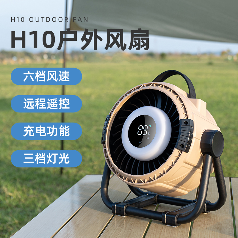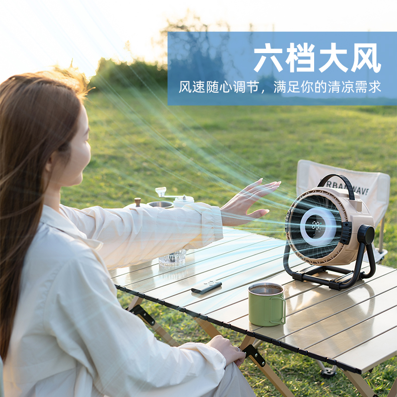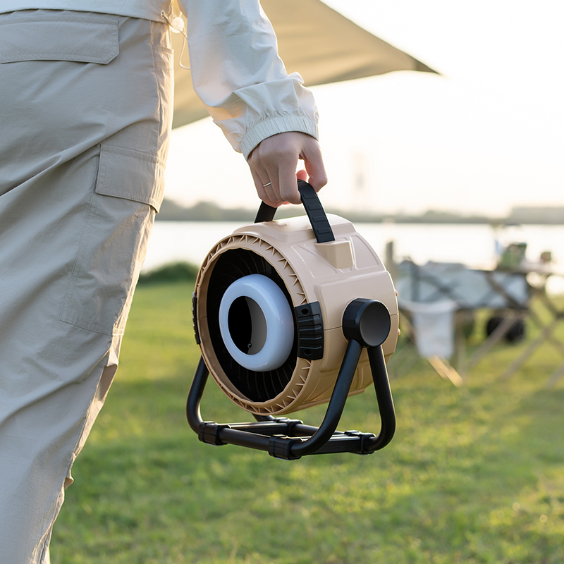This portable camping desk fan is designed for both indoor and outdoor use, making it an ideal companion for camping, travel, and daily life. Featuring a powerful 20,000mAh rechargeable battery, it provides up to 36 hours of long-lasting operation on a single charge.Equipped with multiple functions, this fan integrates cooling, lighting, and power bank capabilities into one compact design. The built-in LED light ensures convenient illumination during nighttime camping or emergencies, while the fan delivers strong and stable airflow with low noise.With its durable structure and practical size (242 × 133 × 241 mm), it is easy to carry and place on any tabletop, offering comfort and convenience wherever you go. Available in army green and beige, it perfectly matches outdoor environments and modern aesthetics