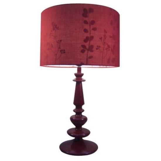 This stylish desk lamp features a red cylinder-shape lampshade with floral patterns. It has a matching geometrically shaped stand in red color. Highlight your room with this stylish desk lamp.