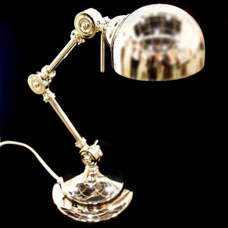 This silver-tone desk lamp boasts a circular base and a semi-globe-shaped lampshade. The flexible arm enables you to adjust the beam angle for enhanced convenience. Delicately crafted from metal, the desk lamp bestows robust construction and remarkable durability.