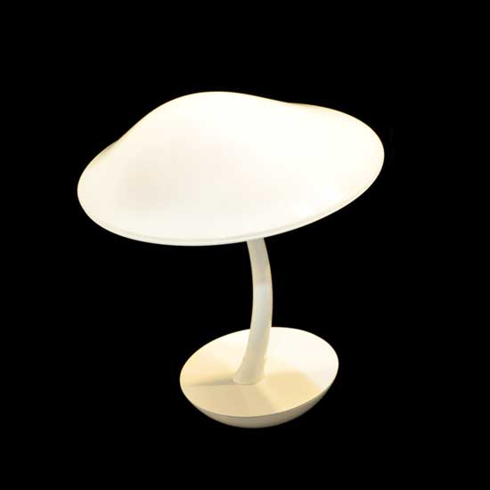 This dainty desk lamp features an allover white mushroom silhouette. It is fitted with an LED light source, diffusing brilliant and stable illumination. This highlighted LED table lamp complements your household desk nicely.