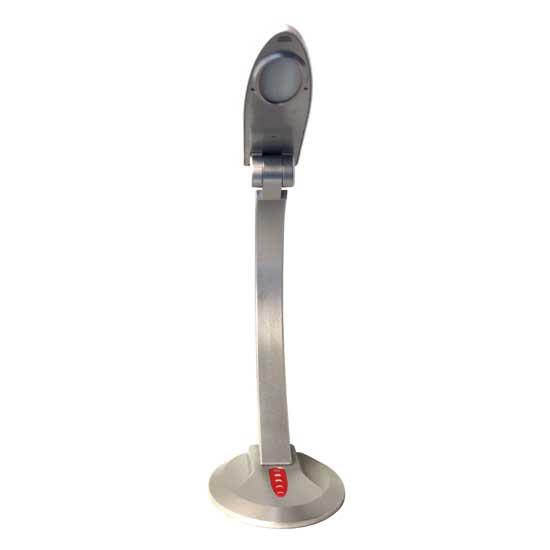 This desk lamp boasts a cool and fashionable design in a compact size. It features a streamlined structure with a round base and a silvery finish. With an eye-protective LED light source, this desk surely is a great light choice for your workplace.