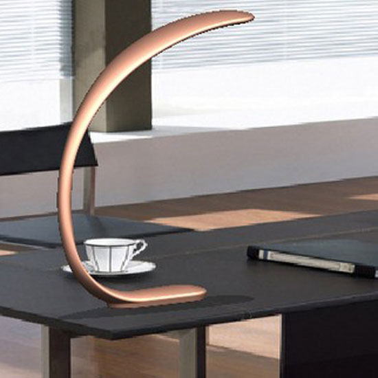 This is a desk lamp with a modern and unique design. It comes with a C-shaped housing in rose gold. This lamp is easy to mix and match with any trendy home décor.