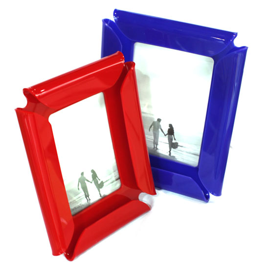 Featured here is a series of photo frames in a red or blue color. The unique design adds a touch of style. Spice up your bedroom simply with any of these chic photo frames.