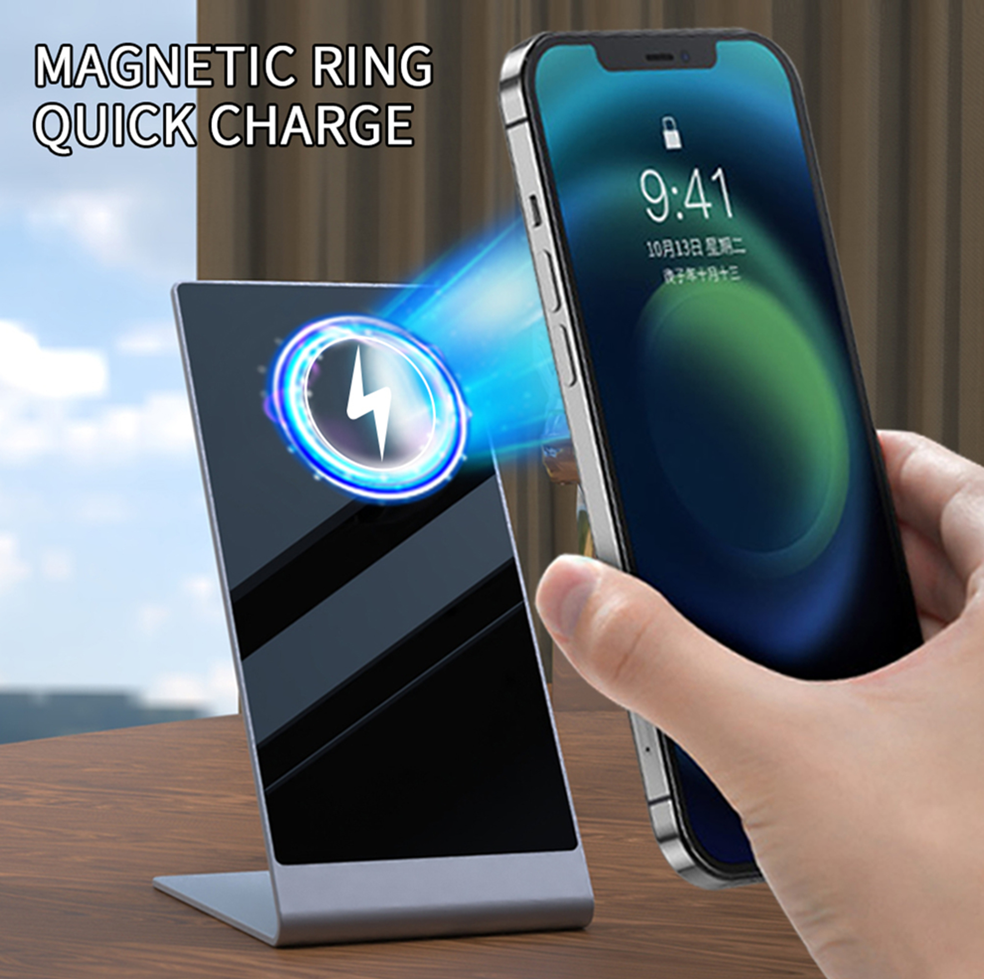 Desktop 15W Magnetic Ring Quick Fast Wireless Charger Stand