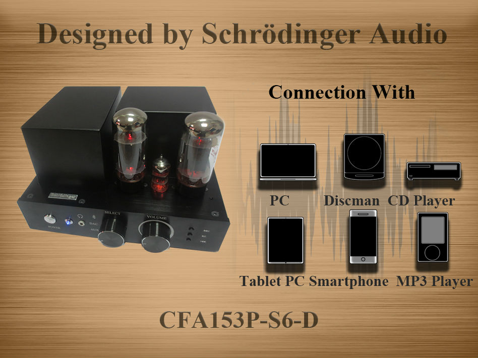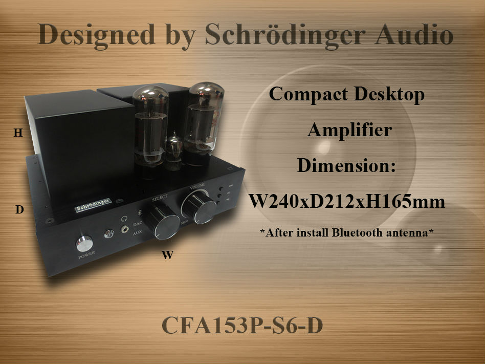 The CFA153P-S6-B is the Desktop Vacuum Tube DAC Bluetooth Amplifier, allow users to connect various music sources to enjoy their music with high quality by AUX, Bluetooth or DAC connection.