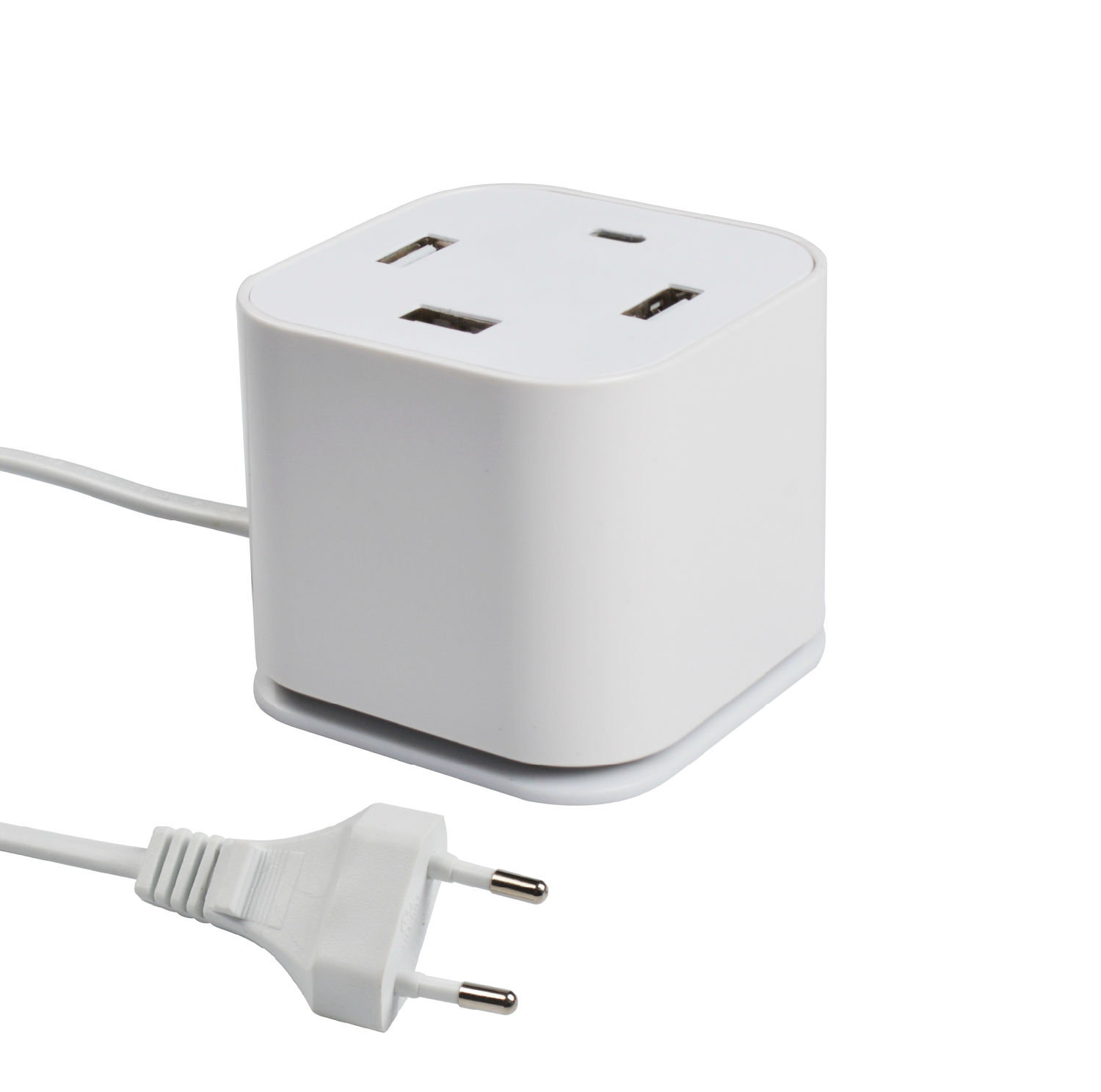 The displayed desktop charging station is made of PVC and is compatible with QC 3.0 and Type C. It comes in a rectangular shape and has four output ports for charging. This charging station offers safe and quick operation and can charge multiple devices at the same time.