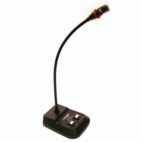 The uni-directional dynamic microphone comes with a stand. The simple control panel allows convenient operation. The desktop microphone is perfect for lectures, seminars and conferences.