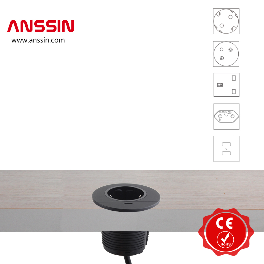 Enhance your workspace with our stylish and efficient Round Recessed Desktop Outlet, designed for convenient power access and advanced USB-C charging capabilities. Featuring a durable aluminum alloy casing and flame-retardant materials, this outlet combines functionality with a sleek design.