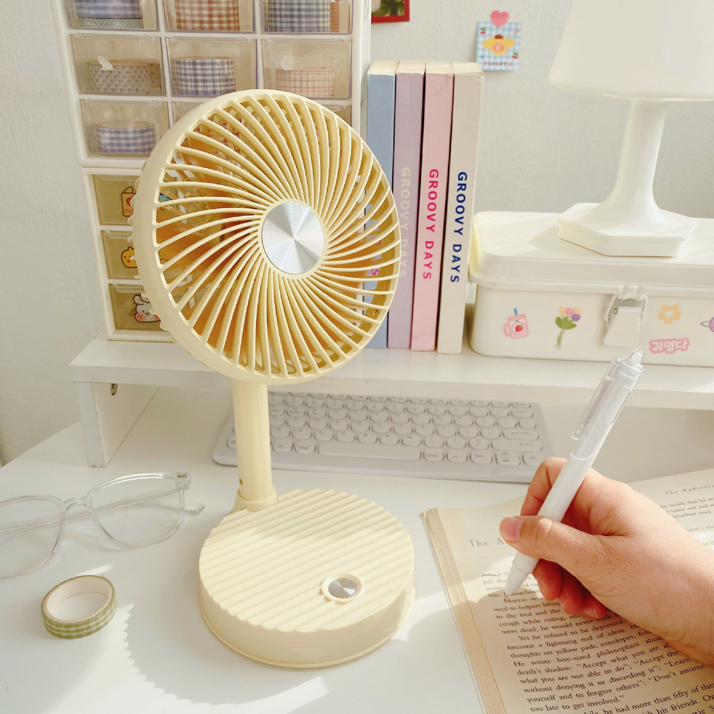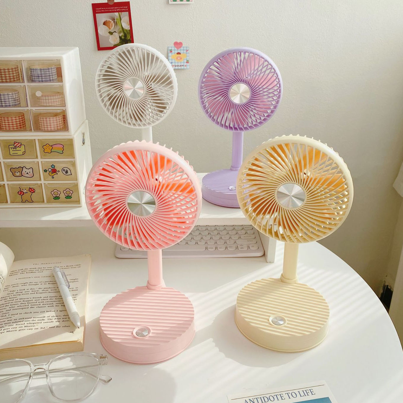 - [Applicable scenarios]: Suitable for multiple scenarios, stable and not shaking, suitable for bedside, dormitory bedside, bookshelves, strollers, etc. No matter where you are at this time, we will drive away all the sultry heat for you.