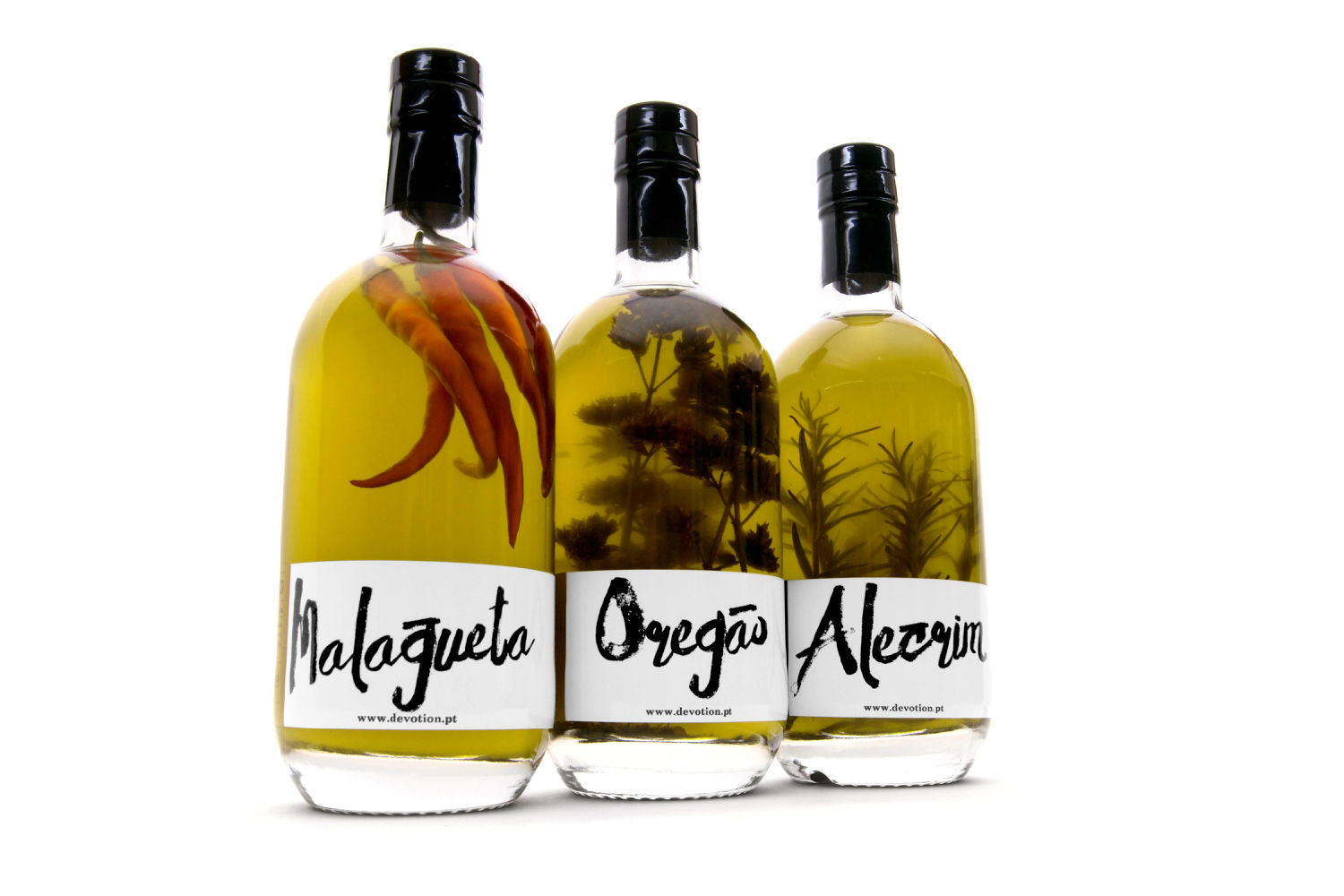 Biological Infusions with premium olive oil, obtained solely by mechanical processes and cold extraction, directly from olive varieties, Galega, Cordovil and Verdeal.\