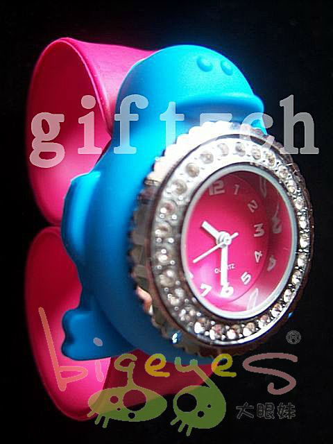 Diamond rhinestone bling jewelry 3D animal cartoon children kids slap snap watch