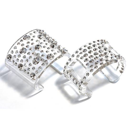 This is a pair of diamond bangles in different style. The left diamond bangle employed a larger contrast of diamond sizes with irregular arrangements. The right diamond bangle employed an organized setting of diamonds.