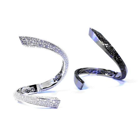 Inspired by the image of a cobra, this diamond bangle features a twisted design for an elegant look. The bangle is fully studded with clear diamonds for enhanced brilliance. It brings out your unique personality without sacrificing your beauty.