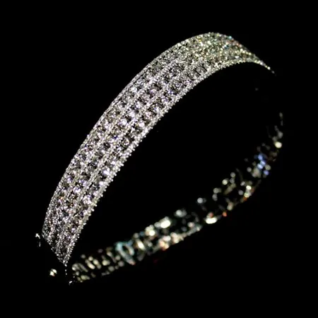 This stylish diamond bracelet flaunts royal beauty with its elegant design. The bracelet surface is adorned with a diamond pave setting, giving it a luxurious touch. This simply is a deserving addition to your jewelry collection.