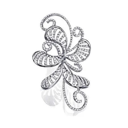 This diamond brooch that is styled into an exquisite flower blooms like no other. The round brilliant diamonds shine with incredible glamour. You can pin it onto your dress or shawl to complement your elegant look.