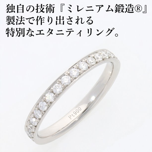 This ring is made with the forging manufacturing method. It works by hardening the metal by stretching or hitting the metal to create the shape of a ring. The excellent hardness makes the ring resistant to scratches and keeps the diamond held firmly.