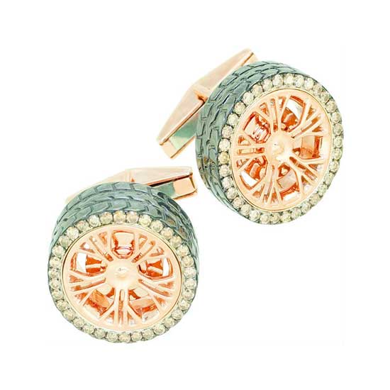 This is a pair of cufflinks with a luxurious design. This pair of cufflinks is crafted with exquisite diamonds on the 18K rose gold setting for a unique and sophisticated sense. This pair of cufflinks makes a must-have addition to your fine jewelry collection.