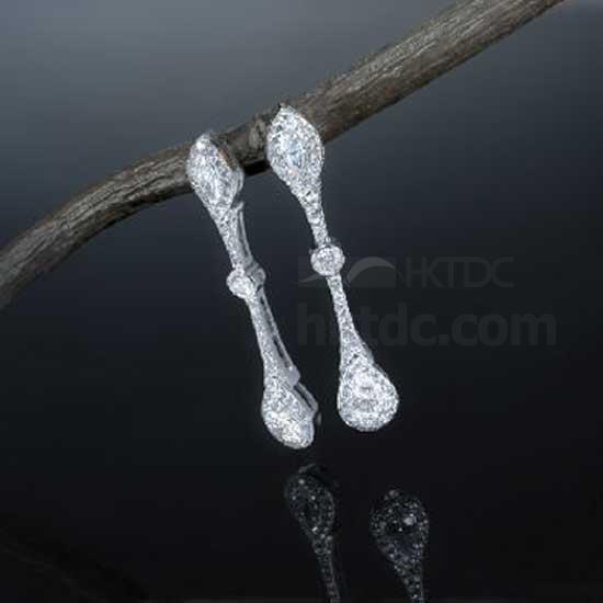 These 18K earrings are studded with sparkling G/VS diamonds for grabbing ladies’ attention. They feature a unique bone-like design with drop details. These fancy earrings are to sure lure ladies’ heart.