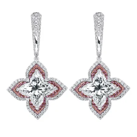 This is a pair of earrings that comes with a luxurious, elegant and attractive look. The large well-cut diamonds are mounted on the flower setting. This pair of earrings shimmers with a high-gloss finish.