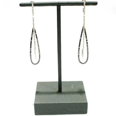 The highlighted pair of diamond earrings comes with a teardrop design. Black and white diamonds are exquisitely arranged on the loops to create a pricey look. This pair of diamond earrings is a classy item to wear with evening dresses.