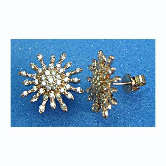 This pair of earrings features a dazzling golden construction. It boasts a sun-like design with sparkling diamonds all over. Add this pair of simple yet eye-catching earrings to your jewelry collection.