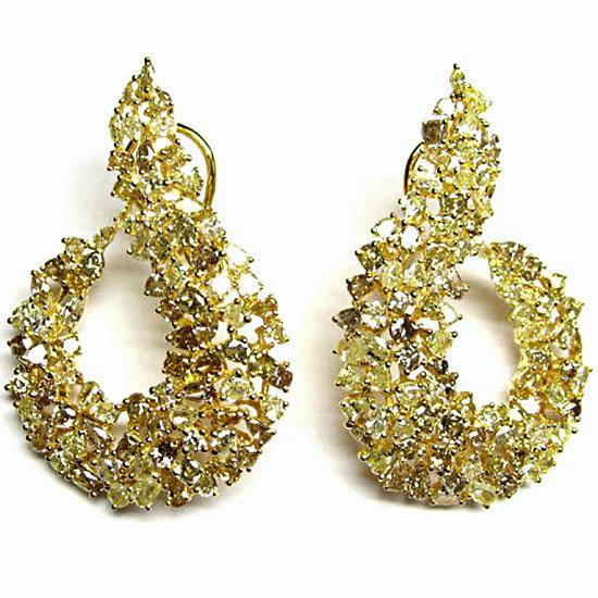 This pair of earrings features a dazzling 18K gold construction. It boasts a curled design with sparkling yellow and brown diamonds all over. Add this pair of simple yet eye-catching diamond earrings to your jewelry collection.