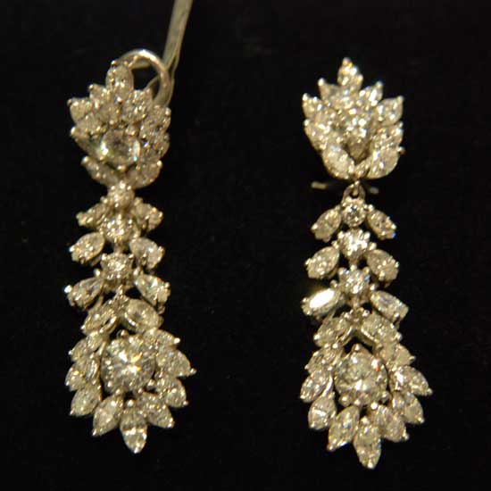 The diamond earrings flaunt an elegant drop style. They are decorated with diamonds to give a shiny appearance. Accent your outfit with this pair of gorgeous earrings.