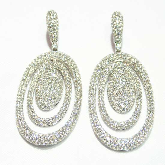 This is a pair of diamond earrings with a loop design to boost elegance. The earrings are paved with petite diamonds to create a pricey figure. This pair of diamond earrings is suitable to match with evening dresses.