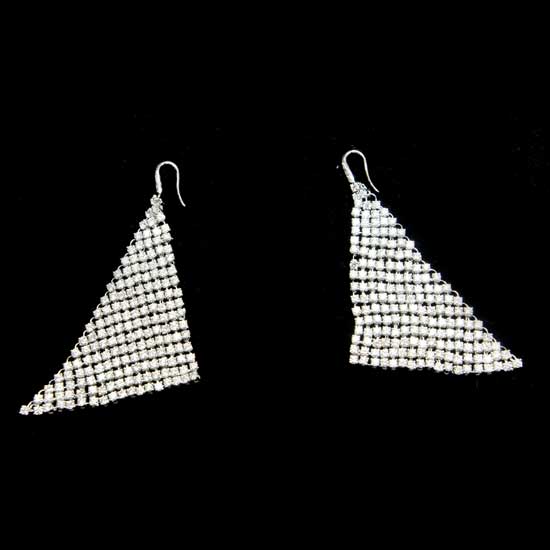 These diamond earrings feature simple yet elegant triangular-shaped design. The stunning jewelry piece is paved with 342 pieces of round-cut diamonds on the 18K white gold setting. The shimmering diamond earrings are wonderful accessories for your evening dress.