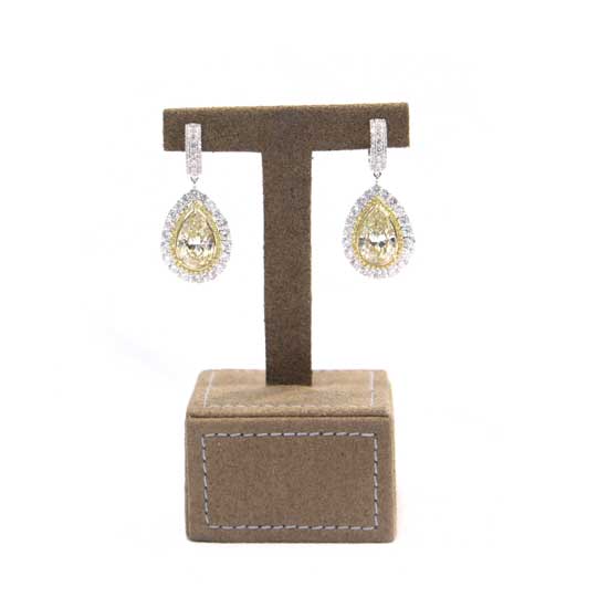 These dangling earrings feature pear-cut diamonds encircled by tiny diamonds. The stunning earrings exhibit exceptional brilliance and sparkle from any angle. The beautiful diamond earrings are perfect to accentuate your daily look.
