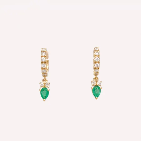 Emerald with Diamond Earrings in 18K Gold