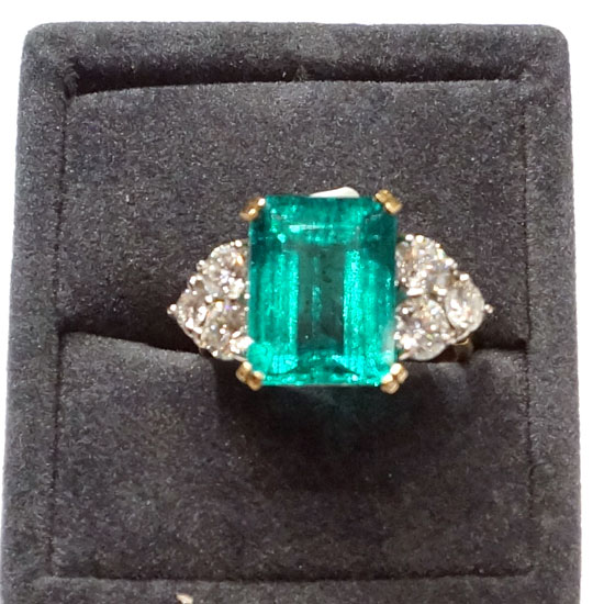 This quality ring comes with a fashionable appearance. It is finely crafted with sparkling diamonds and a green emerald stone as the centerpiece for an eye-catching look. This stunning ring surely is a great item for adding some glamor to your slender finger.