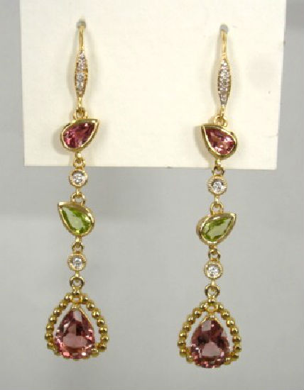 • 14K Yellow Gold Diamond/Pink Tourmaline/Peridot Earrings