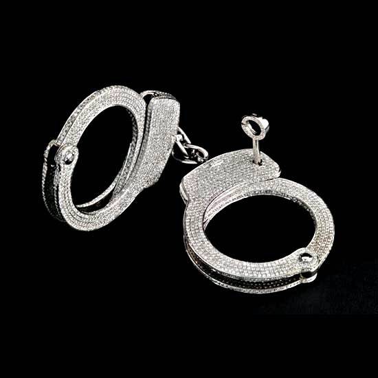 This pair of eye-catching handcuffs features dazzling silvery construction. They boast sparkling diamonds all over, which showcase a touch of sophistication. This pair pf sophisticated handcuffs is perfect for special occasions.