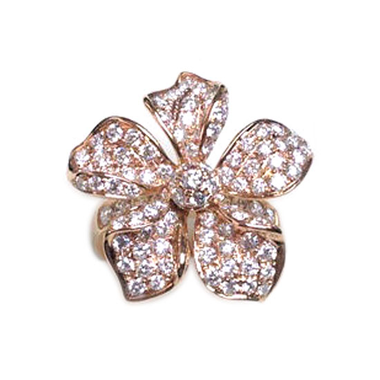 This piece of jewelry comes with a vivid flower-shaped embellishment. It features an 18K rose gold mounting and is adorned with sparkling diamond stones. This piece will add a touch of elegance to your outfit.