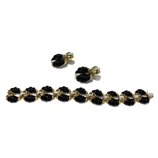 The diamond jewelry set comprises a bracelet and a pair of earrings. The black onyx stones add a hint of modernity. Highlight your look with this diamond jewelry set.