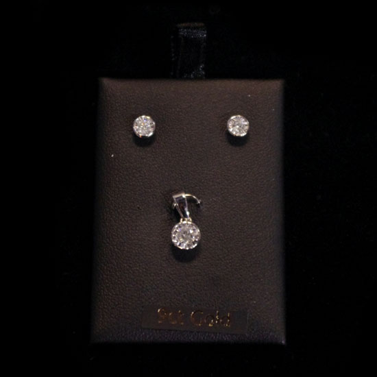 This is a diamond jewelry set coming with a pendant and earrings. It is studded with round brilliant diamonds for ultimate sparkle and shine. It is an ideal addition to complete your jewelry collection.