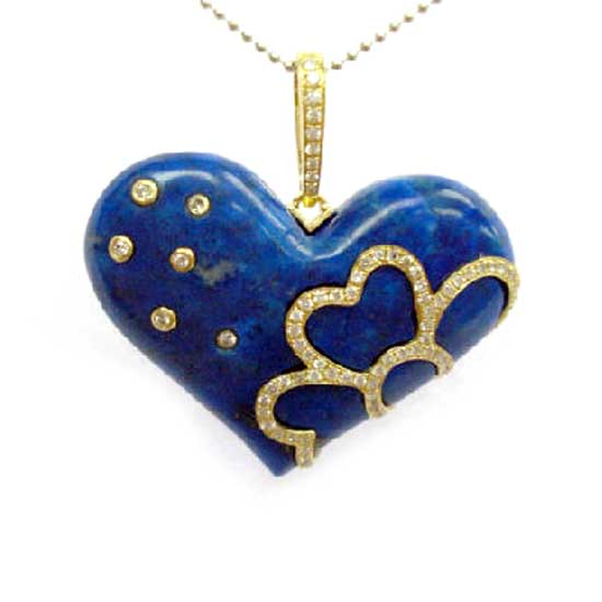This captivating blue lapis pendant comes in a delicate heart shape with 18K gold floral motifs. It is adorned with dazzling diamonds for aristocratic grace. This ingenious diamond lapis pendant is sure to win the favor of your beloved one.