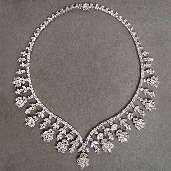 A stunning diamond necklace set with small princess cut diamonds as the main chain. Designed with diamond dangles in graduation size made of marquise cut diamonds. Closure with a clasp also set with diamonds.